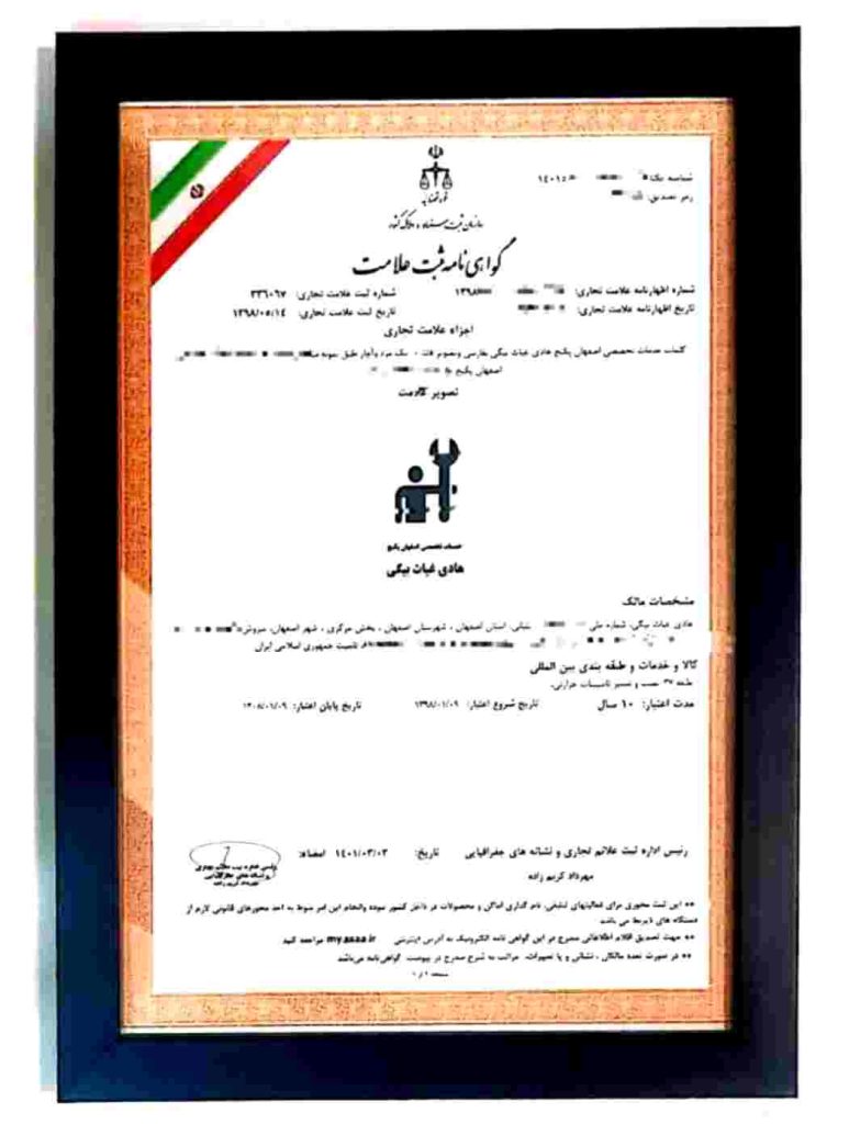 مالکیت برند خدمات تخصصی اصفهان پکیج هادی غیاث بیگی